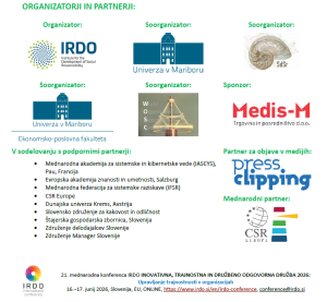 Organizatorji smo IRDO – Inštitut za razvoj družbene odgovornosti, Univerza v Mariboru in Slovensko društvo za sistemsko raziskovanje.