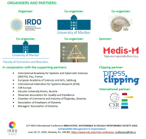 The organisers are IRDO – Institute for the Development of Social Responsibility, the University of Maribor, and the Slovenian Society for Systems Research.
