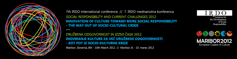Copyright IRDO 2012 | IRDO - INŠTITUT ZA RAZVOJ DRUŽBENE ODGOVORNOSTI 7. mednarodna konferenca DRUŽBENA ODGOVORNOST IN IZZIVI ČASA 2012 Maribor, 8.-10.3.2012
